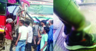 रायगढ़@यात्री बस और ट्रक के बीच जोरदार भिड़ंत,चालक का टूटा पैरकई लोग बुरी तरह हुए घायल