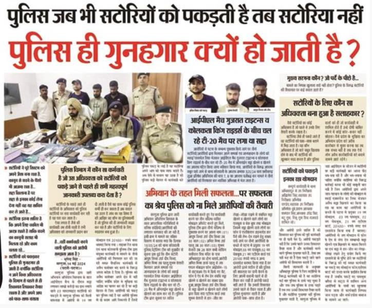 सरगुजा पुलिस द्वारा जारी अभियान ऑपरेशन विश्वास के तहत आपराधिक गतिविधियों मे संलिप्त संदेहियो/आरोपियों की लगातार धरपकड़ की जा रही हैं,इसी क्रम मे मामले का संक्षिप्त विवरण में बताया गया कि दिनांक 13/05/24 कों थाना कोतवाली पुलिस, पेट्रोलिंग टीम कों मुखबीर से सूचना प्राप्त हुई कि तीन सटोरी आयुष सिन्हा उर्फ दीप सिन्हा,अमित मिश्रा उम्र पहलू,शुभम केशरी मिलकर अपने सम्पर्क एवं जानपहचान के लोगो कों स्काई एक्सचेज लिंक भेजकर आईपीएल मैच गुजरात टाइटन्स व कोलकता किंग राइडर्स के बीच चल रहे टी-20 मैच में ऑनलाईन सट्टा खेलने व खेलाने का काम कर रहे है। पुलिस टीम द्वारा सूचना पर त्वरित कार्यवाही करते हुए रेड कार्यवाही करने पर तीन संदिग्ध व्यक्ति मोबाइल ऑपरेट करते हुए मिले, पुलिस टीम द्वारा तीनो संदिग्ध से पूछताछ करने पर अपना नाम (01) आयुष सिन्हा उर्फ दीप सिन्हा उम्र 30 साल (02) अमित मिश्रा उफऱ् पहलू उम्र 30 साल (03) शुभम केसरी उम्र 28 साल सभी साकिन शक्तिपरा शिव मंदिर के पास अम्बिकापुर का होना बताये, आरोपी अमित मिश्रा ऊर्फ पहलू से जप्त एप्पल मोबाइल फ़ोन आईफोन-15 से वाट्सअप ऐप मे किये गए चैट,फोन पे ऐप में लेन देन संबंधि सट्टा खेलने व खेलाने का साक्ष्य प्राप्त हुआ,आयुष सिन्हा उर्फ दीप सिन्हा से सट्टा खेलने व खेलाने वाले लोगों द्वारा दिया गया एटीएम कार्ड तथा शुभम केशरी से हार-जीत का लेखा-जोखा रखने से संबंधित सट्टा खेलने व खेलाने वाले लोगों का पासबुक व चेक बुक तथा मोबाइल जिसमें सट्टा खेलने वाले लोगों का फोन पे एप्लीकेशन डाउनलोड कर पैसे की लेन-देन रखने हेतु साक्ष्य पाये जाने पर तीनों आरोपियों के कजे से घटना मे प्रयुक्त 19 नग मोबाइल,03 नग पासबुक,02 नग चेकबुक,21 नग एटीएम कार्ड एवं 20100 रुपये नगद व अन्य दस्तावेज बरामद किया गया हैं,पर आरोपी इतने शातिर हैं की पुलिस की सफलता पर पानी फेरने के लिए अपनी कहानी पहले से ही तैयार कर रखी है आरोपी पकड़े नहीं जाते हैं कि उनकी शिकायत उससे पहले से तैयार रहता है और पुलिस गुनहगार रहती है और आरोपी पाक-साफ होता है।
