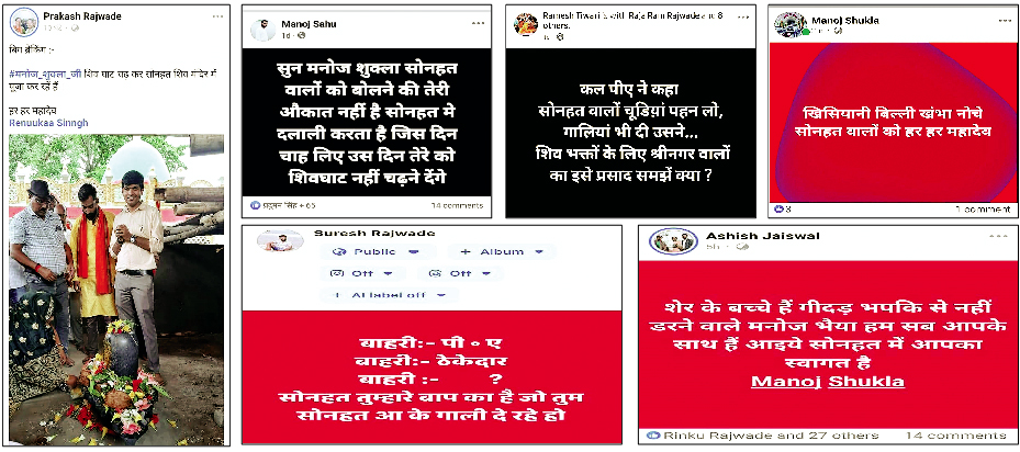 सोनहत में सत्ता और संगठन के मतभेद उजागर होने एवं मंदिर निर्माण व स्थापना के दौरान सोशल मीडिया में भाजपा नेताओं के पोस्ट पर गोंडवाना के श्याम सिंह मरकाम ने चुटकी लेते हुए अपने फेसबुक पोस्ट पर लिखा की किसी व्यक्ति को भगवान महादेव की उपाधि न दी जाए सोनहत में बस विकास की जरूरत है उसे ध्यान दिया जाए, वही गोंडवाना के महामंत्री नीलेश पाण्डेय ने भी भाजपा नेताओं के पोस्ट पर आपत्ति जताते हुए उसे गलत करार दिया है।