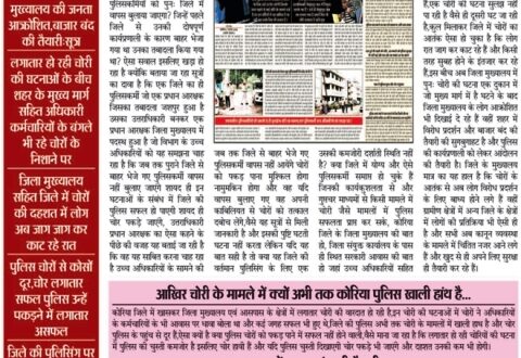 - लगातार चोरी की घटनाओं को लेकर शहरवासियों के आंदोलन की संभावनाओं को लेकर प्रकाशित खबर पर पुलिस कप्तान ने लिया संज्ञान