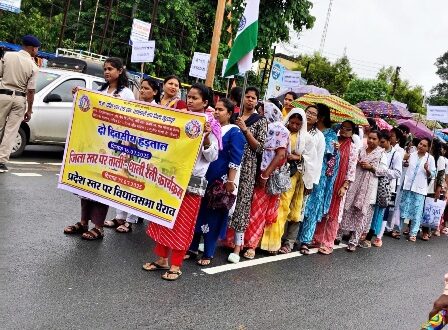नियमितीकरण,जॉब सुरक्षा,ग्रेड पे ,अनुकंपा नियुक्ति,मेडिकल बीमा,27 प्रतिशत वेतन वृद्धि जैसी महत्वपूर्ण सुविधाओं की मांग कर रहे छत्तीसगढ़ प्रदेश के राष्ट्र्रीय स्वास्थ्य मिशन अंतर्गत कार्यरत 16 हज़ार कर्मचारियों का विरोध प्रदर्शन आज सातवें दिन भी जारी रहा।