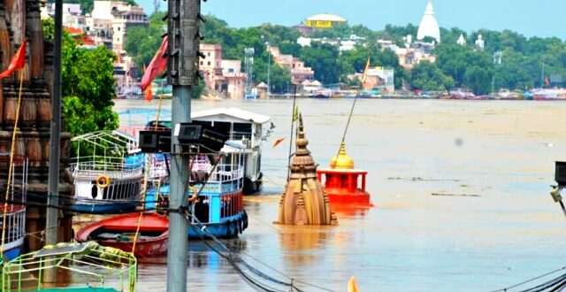 घाट व खेत डूबे,दुकानें बंद,गलियों में चल रहीं नावें, पटरी से उतरा जनजीवन…