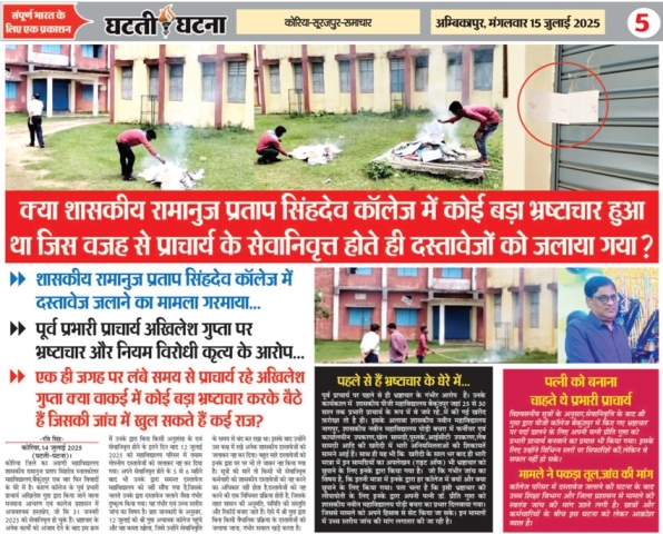 - शासकीय रामानुज प्रताप सिंहदेव कॉलेज का आखिर कौन सा दस्तावेज जला…क्या इसका पता चल पाएगा?