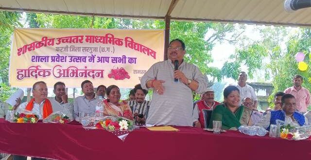 अंबिकापुर,23 जुलाई 2025 (घटती-घटना)। अंबिकापुर के शासकीय उच्चतर माध्यमिक विद्यालय करजी में आज शाला प्रवेश उत्सव का आयोजन किया गया। कार्यक्रम में लुण्ड्रा विधायक श्री प्रबोध मिंज मुख्य अतिथि के रूप में शामिल हुए। कार्यक्रम का शुभारंभ माँ सरस्वती के चित्र पर पुष्प अर्पित कर एवं दीप प्रज्वलित कर किया गया। इसके पश्चात विद्यालय के प्राचार्य श्री तेज कुमार कुजूर, वरिष्ठ व्याख्याता श्री ललन प्रताप सिंह एवं व्याख्याता श्री ए.एच. मनसूरी द्वारा विधायक का पुष्पगुच्छ भेंट कर स्वागत किया गया। विद्यार्थियों द्वारा स्वागत गीत व सांस्कृतिक प्रस्तुतियां दी गईं। विधायक श्री मिंज ने नवप्रवेशित छात्र-छात्राओं का तिलक कर उन्हें मिठाई खिलाई और निःशुल्क पाठ्यपुस्तकें, गणवेश व अन्य आवश्यक शैक्षणिक सामग्री वितरित की। इस अवसर पर विद्यालय परिवार द्वारा विकास कार्यों की माँग विधायक महोदय के समक्ष रखी गई, जिसमें शामिल थे, वाटर कूलर (2 नग), बालक-बालिकाओं के लिए पृथक शौचालय, प्रार्थना स्थल पर शेड निर्माण, सांस्कृतिक कार्यक्रम हेतु हॉल निर्माण, साइकिल स्टैंड की व्यवस्था जैसे मांग रखी गई। विधायक श्री मिंज ने सभी मांगों को सहर्ष स्वीकार करते हुए जल्द कार्य प्रारंभ करने का आश्वासन दिया एवं मौके पर ही संबंधित अधिकारियों को दूरभाष के माध्यम से निर्देशित किया। कार्यक्रम के पश्चात माँ के नाम एक पेड़ 2.0 अभियान के तहत विद्यालय परिसर में वृक्षारोपण भी किया गया। इस अवसर पर जिला पंचायत अध्यक्ष श्रीमती निरूपा सिंह, जिला पंचायत सदस्य श्रीमती पायल सिंह तोमर, मंडल अध्यक्ष श्री राजू सिंह, पूर्व मंडल अध्यक्ष गुरुशरण सिंह, ैडक्ब् अध्यक्ष श्री प्रेमचंद कुशवाहा, विधायक प्रतिनिधि श्री हिरालाल राजवाड़े, श्री मुकेश कुमार गिरि, श्री आशुमल गर्ग, पंच श्री जनार्दन कुशवाहा सहित बड़ी संख्या में जनप्रतिनिधि, ग्रामीणजन उपस्थित रहे।