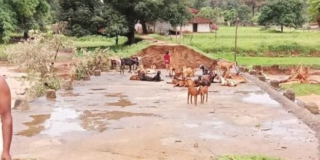 सोनहत,25 जुलाई 2025 (घटती-घटना)। बीती रात रामगढ़ में तेज बारिश से नदी नाले उफान पर रहे, वही तेज बारिश के कारण सेमरिया ग्राम के पटेल पारा स्थित पुलिया की मिट्टी बह जाने से आवागमन ठप्प होने की जानकारी मिली है । इस सबन्ध में मिली जानकारी अनुसार सेमरिया के पटेल पारा मार्ग पर स्थित फुलझर नदी में तेज बहाव के कारण पुल के बगल की मिट्टी पूरी तरह से बह गई। इस घटना से पटेल पारा मार्ग से रामगढ़ जाने वाला रास्ता अवरुद्ध हो गया है,जिससे ग्रामीणों को आवागमन में भारी परेशानी का सामना करना पड़ रहा है। सेमरिया के सामाजिक कार्यकर्ता अवध यादव सहित अन्य ग्रामीणों ने बताया कि नदी ने अपना रास्ता बदल लिया है,जिससे पुल के बगल से बहाव शुरू हो गया है। स्थिति ऐसी बन गई है कि बारिश के दौरान यदि बाढ़ आती है तो बच्चों का स्कूल जाना पूरी तरह से बंद हो जाएगा। वही पैदल नदी में उतर कर पार करके जाना खतरे से कम नही है जो जान जोखिम भरा साबित हो सकता है।