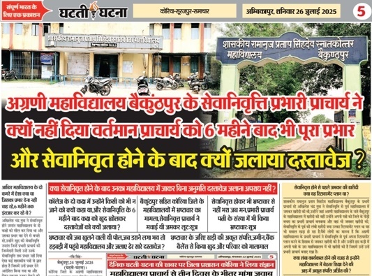 कोरिया,27 जुलाई 2025 (घटती-घटना)। उच्च शिक्षा विभाग के संचालनालय रायपुर को बैकुंठपुर अग्रणी महाविद्यालय के सेवानिवृत्ति प्रभारी प्राचार्य के कार्यप्रणाली को लेकर संज्ञान लेना चाहिए, क्योंकि प्रभारी प्राचार्य ने न्याय विरुद्ध कार्य किया है कहीं ना कहीं उन्होंने आरोपी बनने का कार्य दस्तावेजों को जलाकर किया है, उनके द्वारा दस्तावेज जलाने को लेकर यह साफ हो गया है कि उनके कार्यकाल में महाविद्यालय में जमकर भ्रष्टाचार हुआ है क्योंकि इनका बिना किसी से अनुमति लिए दस्तावेजों को सेवानिवृत होने के बाद जलाना ही इस बात को प्रमाणित करता है कि इनके हाथ भ्रष्टाचार से अछूते नहीं हैं, अब उनके तमाम तरीके की जांच की मांग उठने लगी है इनके अब तक के कार्यकाल की बारीकी से जांच हो यह मांग अब बहुत तेजी से उठ रहा है, पर क्या जांच हो पाएगी यह भी बड़ा सवाल है, क्योंकि प्रभारी प्राचार्य काफी रसूखदार व्यक्ति हैं, क्योंकि यदि रसूखदार नहीं होते तो महाविद्यालय में इतना लंबा कार्यकाल शायद उनका नहीं होता, इतने संवेदनशील पद पर इतना लंबा कार्यकाल क्या भ्रष्टाचार की तरफ इशारा नहीं करता? इस पद पर जहां परिवर्तन होना चाहिए था वहां पर परिवर्तन न होना भी कहीं ना कहीं भ्रष्टाचार करने की उन्हें अनुमति देता रहा? कार्यकाल किसी का भी रहे चाहे भाजपा या कांग्रेस सभी में यह अग्रणी महाविद्यालय के प्रभारी प्राचार्य बनने में सफल रहे, यहां तक के जितने भी नवीन महाविद्यालय खुले समय समय पर कई सालों तक उसके भी वह प्रभारी प्राचार्य बने रहे और जहां भी रहे वहां पर उन्होंने जमकर खरीदी की, खरीदी भी ऐसी की जिसका उपयोग शायद ही वहां पर अध्ययनरत छात्र छात्रों ने उन सामानों का किया होगा।