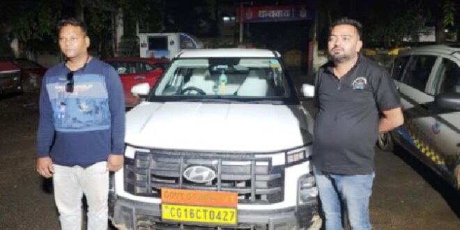 उक्त व्यक्तियों ने प्रार्थी एवं ट्रैक्टर चालक यशवंत को धमकाते हुए कहा कि यदि कागज नहीं दिखाया गया तो 25,000 का चालान बनेगा। भयभीत होकर प्रार्थी ने 600 फोन-पे से और 400 नकद मिलाकर कुल 1000 उन्हें दे दिए, जिसके बाद आरोपी चोंटिया की ओर रवाना हो गए। मामले की गंभीरता को देखते हुए थाना बांगों में अपराध क्रमांक 116/25,धारा 308(2) भारतीय न्याय संहिता के तहत प्रकरण दर्ज किया गया तथा सरहदी जिलों में नाकाबंदी कर सूचना प्रसारित की गई। पुलिस अधीक्षक कोरिया श्री रवि कुर्रे एवं अतिरिक्त पुलिस अधीक्षक पंकज पटेल के निर्देश पर थाना बैकुंठपुर कोतवाली प्रभारी निरीक्षक विपिन लकड़ा के मार्गदर्शन में सउनि अदीप प्रताप सिंह एवं उनकी टीम प्रआर 388 दीपक पांडेय, आरक्षक महेन्द्रपुरी, आरक्षक अमरेशानंद (साइबर सेल) तथा चालक भगवान दास द्वारा भारी चौक के पास उक्त क्रेटा वाहन को घेराबंदी कर पकड़ लिया गया। वाहन में दो व्यक्ति मौजूद मिले,जिनकी पहचान जाहिद खान पिता सरफुद्दीन (35 वर्ष) एवं प्रकाश सिंह गोंड पिता बिंदु सिंह गोंड (31 वर्ष), निवासी न्यू लेदरी झगराखाड़, जिला मनेंद्रगढ़-चिरमिरी-भरतपुर के रूप में हुई। सूचना तत्काल वरिष्ठ अधिकारियों एवं थाना बांगों को दी गई, जिसके उपरांत थाना बांगों की टीम द्वारा वाहन को जप्त कर दोनों आरोपियों को विधिवत हिरासत में लेते हुए अग्रिम वैधानिक कार्रवाई हेतु उन्हें कोरबा रवाना किया गया। पुलिस की तत्परता से फर्जी पुलिस बनकर ठगी करने वाले आरोपियों की धरपकड़ से आमजन में सुरक्षा की भावना और अपराधियों में भय का वातावरण बना है।