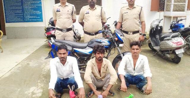 अंबिकापुर,03 अगस्त 2025 (घटती-घटना)। गांधीनगर पुलिस ने 3 अगस्त को बनारस रोड स्थित एफसीआई गोदाम के पास से नशीले इंजेक्शन के साथ तीन आरोपी को गिरफ्तार किया है। ये तीनों आरोपी बाइक में थे और बिक्री करने के लिए ग्राहक की तलाश कर रहे थे। जत नशीले इंजेक्शन की कीमत 1 लाख 20 हजार रुपए बताई जा रही है। पुलिस ने आरोपी के खिलाफ कार्रवाई कर जेल दाखिल कर दिया है। जानकारी के अनुसार गांधीनगर पुलिस पेट्रोलिंग पर निकली थी। तभी बनारस रोड स्थित एफसीआई गोदाम के सामने बाइक में तीन युवक थे जो पुलिस को देखकर तेज रफ्तार में भागने की कोशिश करने लगे। संदेह होने पर पुलिस ने पीछा कर पकड़ा। पुलिस ने इनके झोले की तलाशी ली तो अलग-अलग बरांड के कुल 120 नग नशीले इंजेक्शन पाया गया। जिसे पुलिस ने जत किया है। जत नशीले इंजेक्शन की कीमत 1 लाख 20 हजार रुपए बताई जा रही है। मामले में पलिस ने आरोपी अनिल बंजारे पिता चिंतामणी उम्र 30 वर्ष,मुजाहिद हुसैन पिता साकिर हुसैन उम्र 30 वर्ष व गंगाराम नायक पिता हीरालाल नायक उम्र 25 तीनों निवासी सिरसी थाना बसदेई जिला सूरजपुर के रहने वाले हैं। जिन्हें पुलिस ने गिरफ्तार कर धारा 22(सी) एनडीपीएसएक्ट के तहत कार्रवाई कर जेल दाखिल कर दिया है।