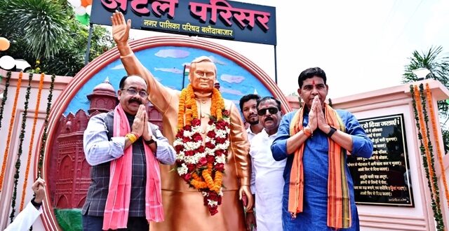 बलौदाबाजार ,03 अगस्त 2025 (ए)। उप मुख्यमंत्री अरुण साव ने आज जिला मुख्यालय बलौदाबाजार स्थित गार्डन चौक में निर्मित अटल परिसर का लोकार्पण किया। उन्होंने अटल परिसर में स्थापित पूर्व प्रधानमंत्री भारतरत्न स्वर्गीय अटल बिहारी बाजपेयी की प्रतिमा का अनावरण भी किया। इसके साथ ही 4 करोड़ 36 लाख रुपये की लागत से बनने वाले नालंदा परिसर का भूमिपूजन भी किया। इस अवसर पर उप मुख्यमंत्री ने नगर पालिका बलौदाबाजार में विभिन्न विकास कार्यों के लिए 5 करोड़ रुपये देने की घोषणा की। कार्यक्रम में राजस्व मंत्री टंकराम वर्मा,रायपुर सांसद बृजमोहन अग्रवाल, नगर पालिका अध्यक्ष अशोक जैन भी उपस्थित थे।