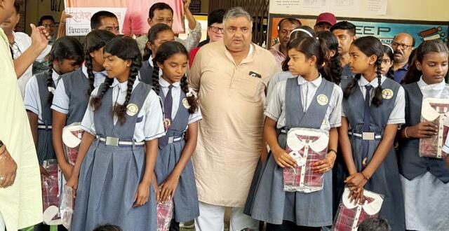 लखनपुर,07 अगस्त 2025 (घटती-घटना)। छत्तीसगढ़ के अंबिकापुर विधायक राजेश अग्रवाल लगातार अपने क्षेत्र का भ्रमण करते हुए लोगों के बीच पहुंच रहे और उनसे मुलाकात कर उनकी समस्याएं सुन निराकरण भी कर रहे है। अब विधायक राजेश अग्रवाल ने अपने विधानसभा क्षेत्र के ग्रामीण अंचलों में स्कूली छात्राओं को निःशुल्क वस्त्र का वितरण कर शिक्षा के लिए प्रोत्साहित कर रहे। 7 अगस्त दिन गुरुवार को अंबिकापुर विधानसभा क्षेत्र के लखनपुर विकासखंड के ग्राम निम्हा स्वामी आत्मानंद विद्यालय, रजपुरीकला कस्तूरबा गांधी आवासीय विद्यालय, मुटकी, खैरबार मेंड़्राकला शासकीय स्कूलों में अध्यनरत छात्राओं को विधायक राजेश अग्रवाल ने स्वयं से निशुल्क वस्त्र का वितरण किया है। शाला प्रवेश उत्सव कार्यक्रम में भी विधायक स्वयं से 11वीं 12वीं की छात्राओं को पानी बोतल का वितरण करते हुए शिक्षा के लिए प्रोत्साहित कर उनके उज्जवल भविष्य की कामना की और प्रतिदिन स्कूल आकर बेहतर शिक्षा ग्रहण कर अपने माता-पिता गुरुजनों और क्षेत्र का नाम रोशन करने की बात कही है।यही नहीं कई वर्षों से विधायक राजेश अग्रवाल के द्वारा और उनके परिवार जनों द्वारा ठंड और बरसात के मौसम में अंबिकापुर ग्रामीण लखनपुर और उदयपुर विकासखंड के पहुंच विहीन ग्रामों में जाकर कपड़े और कंबल का वितरण किया जाता रहा है। निशुल्क वस्त्र वितरण करने के दौरान नीरज अग्रवाल राकेश अग्रवाल अविनाश अग्रवाल भाजपा मंडल अध्यक्ष दिनेश बारी,भाजपा मंडल अध्यक्ष विवेक सिंह सेंगर,महामंत्री संजय राजवाड़े,सोनू तिग्गा,सागर विश्वकर्मा, पहल राम राजवाड़े, डोमन राम राजवाड़े, दिगंबर यादव,रवि गुप्ता,उदय दास बघेल, श्यामा शंकर ठाकुर,बढ़हा राम,अन्य भाजपा कार्यकर्ता व स्कूल के शिक्षक शिक्षिकाएं मौजूद रहे।