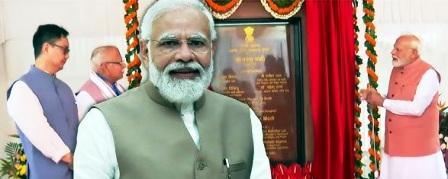 नई दिल्ली,11 अगस्त 2025 (ए)। प्रधानमंत्री नरेंद्र मोदी सोमवार को नई दिल्ली के बाबा खड़क सिंह मार्ग पर सांसदों के लिए बनाए गए 184 नए बहुमंजिला फ्लैट का उद्घाटन किया। ये सभी फ्लैट टाइप-व्हीआईआई श्रेणी के हैं। यह कार्यक्रम सुबह 9:00 बजे शुरू हुआ। इसमें लोकसभा अध्यक्ष ओम बिरला, केंद्रीय मंत्री मनोहर लाल खट्टर और किरेन रिजिजू भी शामिल हुए। उद्घाटन समारोह के दौरान प्रधानमंत्री नरेंद्र मोदी ने आवासीय परिसर में सिंदूर का एक पौधा भी लगाया। इसके साथ ही वे वहां काम करने वाले श्रमिकों (श्रमजीवियों) से भी मिले और उनके योगदान की सराहना की।