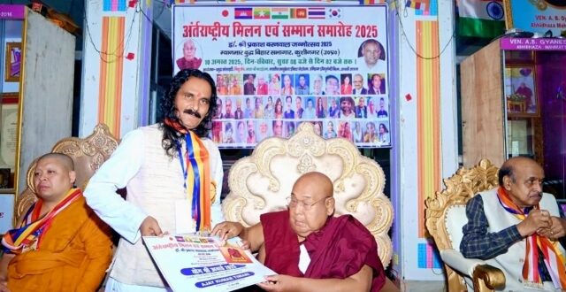 अंबिकापुर,12 अगस्त 2025 (घटती-घटना)। प्रबुद्ध सोसायटी,भीखू संघ एवं इन्डियन एक्यूप्रेशर एसोसिएशन के संयुक्त तत्वावधान् में आयोजित अन्तर्राष्ट्रीय मिलन एवं सम्मान समारोह म्यांमार बुद्ध बिहार कुशीनगर उत्तर प्रदेश में समाज सेवा,शिक्षा,योग एवं स्वास्थ्य के क्षेत्र से जुड़े चयनित चौबीस समाजसेवियों को मुख्य अतिथि डॉ भदन्त ज्ञानेश्वर के कर कमलों से सम्मान दिया गया। योग एवं समाज सेवा के क्षेत्र में निरंतर सेवारत श्री अजय तिवारी कर्मयोग राज्य समन्वयक आर्ट ऑफ लिविंग छत्तीसगढ़ को अन्तर्राष्ट्रीय योग श्री अवार्ड 2025 प्रदान किया गया। वरिष्ठ समाजसेवी अजय तिवारी जी छत्तीसगढ़ राज्य से अलंकृत होने वाले वरिष्ठ समाजसेवी हैं। अन्तर्राष्ट्रीय योग श्री अवार्ड से सम्मानित होना छत्तीसगढ़ में अम्बिकापुर निवासी वरिष्ठ समाजसेवी अजय तिवारी को सम्मानित किया जाना छत्तीसगढ़ एवं सरगुजा वासियों के लिए गर्व की बात है। सरगुजा जिले के स्वैच्छिक संगठनों,आध्यात्मिक संगठन,नागरिकों,योग से जुड़े सदस्यो ने वरिष्ठ समाजसेवी अजय तिवारी को हार्दिक बधाई एवं शुभकामनाएं दी।
