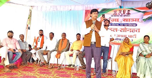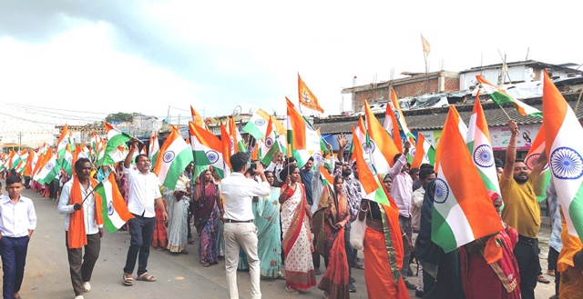 - ‘भारत माता की जय’, ‘वंदे मातरम’ और ‘जय हिंद’ के नारों से पूरा वातावरण गूंज उठा,कार्यकर्ता घर घर तिरंगा लगाएं गांव में निकालें तिरंगा यात्रा