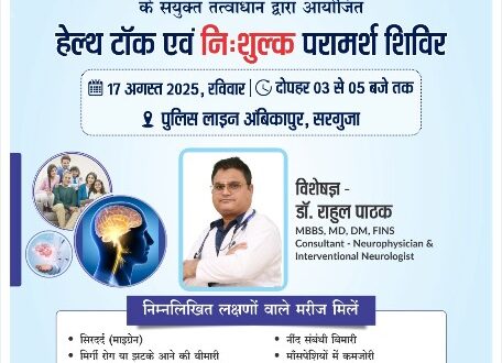 अंबिकापुर,16 अगस्त 2025 (घटती-घटना)। न्यूरोफिजिशियन एंड इंटरवेंशनल न्यूरोलोजिस्ट स्पेशलिस्ट डॉ राहुल पाठक द्वारा पुलिस अधिकारी/कर्मचारियों से किया जायगा हेल्थ टॉक, देंगे उचित परामर्श। जिले में पदस्थ पुलिस अधिकारी/कर्मचारियों एवं उनके परिवारों के सदस्यों के लिए वरिष्ठ पुलिस अधीक्षक सरगुजा श्री राजेश अग्रवाल (भा.पु.से.) के दिशा निर्देशन मे सरगुजा पुलिस एवं रामकृष्ण केयर हॉस्पिटल रायपुर के संयुक्त तत्वाधान मे आयोजित पुलिस वेलफेयर से निशुल्क हेल्थ टॉक एवं परामर्श शिविर का सुव्यवस्थित सकारात्मक आयोजन रक्षित केन्द्र अम्बिकापुर में दिनांक 17/08/25 (दिन रविवार) को (समय दोपहर 03ः00 बजे से 05ः00 बजे तक) किया जाना प्रस्तावित है। उपरोक्त शिविर में रामकृष्ण केयर हॉस्पिटल रायपुर से डॉ. राहुल पाठक न्यूरोफिजिशियन एंड इंटरवेंशनल न्यूरोलोजिस्ट स्पेशलिस्ट उपस्थित होकर अपनी सेवाएँ प्रदान करेंगे। उक्त निशुल्क हेल्थ टॉक एवं परामर्श शिविर मे सरगुजा जिले के पुलिस अधिकारी कर्मचारी, नगर सेना, केंद्रीय जेल अंबिकापुर के अधिकारी कर्मचारी, पी. टी. एस. मैनपाट के अधिकारी कर्मचारी, विभिन्न पुलिस की शाखाओ मे पदस्थ अधिकारी कर्मचारी एवं उनके परिवार शामिल हो सकेंगे।