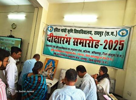 अंबिकापुर,18 जुलाई 2025 (घटती-घटना)।इंदिरा गांधी कृषि विश्वविद्यालय रायपुर के अंतर्गत संचालित राजमोहिनी देवी कृषि महाविद्यालय एवं अनुसंधान केंद्र, अंबिकापुर सहित शंकरगढ़ और प्रतापपुर के महाविद्यालयों में स्नातक प्रथम वर्ष के नवप्रवेशित छात्र-छात्राओं के लिए दीक्षारंभ समारोह 18 अगस्त से 8 सितंबर तक आयोजित किया जा रहा है। कार्यक्रम का उद्घाटन 18 अगस्त को हुआ, जिसमें कुलपति डॉ. गिरीश चंदेल ने हाइब्रिड मोड में विद्यार्थियों को संबोधित किया। रायपुर की अधिष्ठाता डॉ. आरती गुहे ने शुभकामनाएं दीं। अंबिकापुर में प्रभारी अधिष्ठाता डॉ. नीलम चौकसे, डॉ. एके सिंह, डॉ. पीएस राठिया व डॉ. केएल पैंकरा सहित अन्य वरिष्ठ शिक्षकों की उपस्थिति में माता सरस्वती के चित्र के समक्ष दीप प्रज्वलन कर कार्यक्रम की शुरुआत की गई। विद्यार्थियों को पाठ्यक्रम, डिग्री, डिप्लोमा और शोध की जानकारी दी गई। वक्ताओं ने अनुशासन, गुणवत्तापूर्ण शिक्षा, शोध और खेल गतिविधियों में भागीदारी के लिए प्रेरित किया। कार्यक्रम में विभिन्न महाविद्यालयों के प्राध्यापकों ने भी छात्रों को शुभकामनाएं दीं।