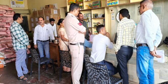 अंबिकापुर,25अगस्त 2025 (घटती-घटना) कृषकों की ओर से प्राप्त शिकायत के आधार पर, जिला स्तरीय संयुक्त टीम (कृषि विभाग एवं राजस्व विभाग) द्वारा खरसिया रोड स्थित मेसर्स शंकर ट्रेडिंग कंपनी के परिसर का औचक निरीक्षण किया गया। निरीक्षण के दौरान परिसर में यूरिया नहीं है की सूचना चस्पा की गई थी जबकि भौतिक रूप से परिसर में 37 बोरी यूरिया का भंडारण उपलध पाया गया। प्रदर्शित सूचना और वास्तविक भंडारण के मध्य अंतर पाए जाने के कारण, नियमानुसार कार्यवाही करते हुए संबंधित फर्म को नोटिस जारी किया गया तथा उक्त यूरिया के विक्रय पर प्रतिबंध लगाते हुए उसे सील कर कंपनी के प्रोपराइटर श्री अभिषेक अग्रवाल को अभीरक्षा हेतु सुपुर्द किया गया। उक्त कार्रवाई के दौरान श्री पी. एस. दीवान, उप संचालक कृषि,श्री अम्ब्रोस टोप्पो,अनुविभागीय कृषि अधिकारी,श्री अभिषेक झा, सहायक संचालक कृषि,श्री उमेश्वर सिंह बाज तहसीलदार,श्री जे. आलम, उर्वरक निरीक्षक उपस्थित थे।