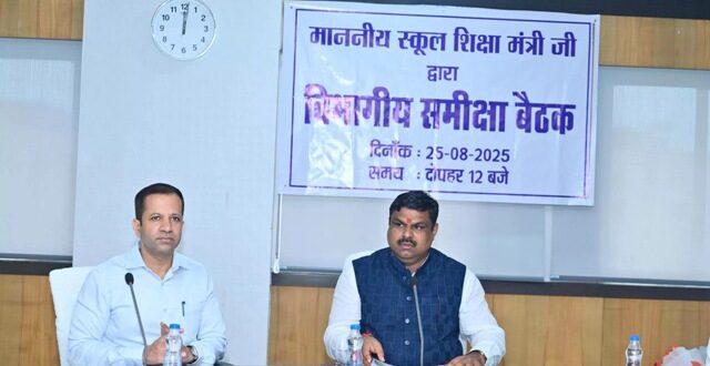 रायपुर,25 अगस्त 2025 । छत्तीसगढ़ की शिक्षा व्यवस्था को और मजबूत बनाने की दिशा में राज्य सरकार ने एक और बड़ा कदम उठाया है। स्कूली शिक्षा मंत्री गजेंद्र यादव ने सोमवार को नवा रायपुर स्थित महानदी भवन में विभाग के वरिष्ठ अधिकारियों के साथ एक महत्वपूर्ण समीक्षा बैठक की। बैठक का मूल उद्देश्य था…शिक्षा ही प्रगति की सबसे मजबूत नींव है। इसी सोच के साथ प्रदेश के शासकीय विद्यालयों की स्थिति का गहन आकलन किया गया। विद्यालयों के उन्नयन पर चर्चा बैठक में प्रदेश भर के शासकीय विद्यालयों की शिक्षकीय व्यवस्था,उन्नयन, और आवश्यक संसाधनों की उपलधता पर विशेष रूप से चर्चा हुई। मंत्री यादव ने स्पष्ट कहा कि बच्चों को गुणवत्तापूर्ण शिक्षा देना सरकार की सर्वोच्च प्राथमिकता है। इसके लिए संसाधनों का न्यायपूर्ण वितरण और शिक्षकों की उपलधता सुनिश्चित की जाएगी। गुणवत्तापूर्ण शिक्षा पर जोर मंत्री यादव ने बैठक में कहा- छत्तीसगढ़ का उज्ज्वल भविष्य तभी संभव है जब बच्चों को गुणवत्तापूर्ण शिक्षा मिले। उन्होंने अधिकारियों को निर्देशित किया कि किसी भी विद्यालय में शिक्षकों की कमी न रहे और जहां आवश्यकता है, वहां तुरंत सुधारात्मक कदम उठाए जाएं। डिजिटल शिक्षा, पुस्तकालय, प्रयोगशाला और खेलकूद जैसी सुविधाओं को सुदृढ़ करने पर भी चर्चा की गई।