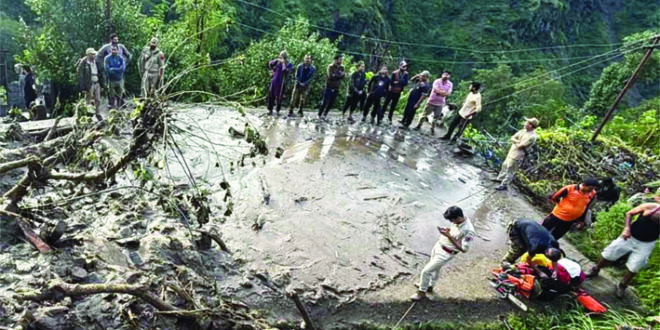 वहीं, रामबन के राजगढ़ में बादल फटने से 4 लोगों की मौत हो गई। एक व्यक्ति लापता है। उसकी तलाश जारी है। हिमाचल प्रदेश में मंडी के गोहर में शुक्रवार देर रात बादल फटा था। नांडी पंचायत में नसेंणी नाला में कई गाडि़यां बह गईं। शिमला के जतोग कैंट में लैंडस्लाइड हुई। सेना की रेसीडेंशियल बिल्डिंगों को खाली कराया गया। जम्मू-कश्मीर के कटरा में बारिश के कारण वैष्णो देवी यात्रा 5 दिन से रुकी है। 26 अगस्त को यात्रा रूट पर लैंडस्लाइड में 34 लोगों की मौत हुई थी। महाराष्ट्र के लातूर और नांदेड़ में 50 सड़कें-पुल डूब गए हैं।