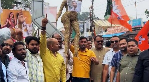 अंबिकापुर,01 सितम्बर 2025 (घटती-घटना)। बिहार के दरभंगा में कॉंग्रेस व यूपीए की सभा में प्रधानमंत्री श्री नरेंद्र मोदी जी की स्वर्गीय माताजी को अभद्र भाषा का प्रयोग कर जिस प्रकार गाली दी गई उसको लेकर आज भारतीय जनता युवा मोर्चा अंबिकापुर सरगुजा ने स्थानीय घड़ी चौक पर काँग्रेस नेता राहुल गांधी तथा आरजेडी नेता तेजस्वी यादव का पुतला दहन किया। इस अवसर पर भाजयुमो जिला महामंत्री अंशुल श्रीवास्तव ने कहा कि प्रधानमंत्री नरेंद्र मोदी जी की माँ के लिए कांग्रेसियों द्वारा प्रयोग किए गए अपशद किसी भी स्थिति में क्षमा योग्य नहीं है। इनकी बेशर्मी देखिए कि कॉंग्रेस के नेता राहुल गांधी और आरजेडी के नेता तेजस्वी यादव ने अब तक इस घटना पर न तो खेद जताया न ही माफ़ी मांगी। भारतीय जनता युवा मोर्चा इस घटना की कड़ी निंदा करती है तथा कॉंग्रेस से सार्वजनिक माफ़ी की मांग करती है। इस अवसर पर भाजपा समलाया मंडल अध्यक्ष कमलेश तिवारी ने कहा कि ये कॉंग्रेस पार्टी अब गाली वाली कॉंग्रेस बनकर रह गयी है, ऐसी चरित्रहीन कॉंग्रेस का सफाया करके आम जनता इन्हें सबक सिखाएगी। पुतला दहन के दौरान भाजपा जिला उपाध्यक्ष विनोद हर्ष, संदीप सोनी, उमेश अग्रवाल, किजल किशोर पंड्या, आकाश गुप्ता, दिनेश शुक्ला, गौतम विश्वकर्मा, अजय सोनी, श्र् श्वेता गुप्ता, श्रीमती मधु चौदहा, श्रीमती सोनू तिग्गा, नीलम रजवाड़े, सरिता जायसवाल, आशा शुक्ला, प्रियंका चौबे, अर्चना वर्मा, सुनीता, संजीव वर्मा, अमोघ कश्यप, रोचक गुप्ता, विकाश शुक्ला, हैप्पी सिंह, नितिन गुप्ता, श्रीधर केशरी,अभिनंदन सिंह, मार्कण्डेय तिवारी, सोलू सिंह, रवि सोनी, दीपक यादव,सौरभ मिश्रा, मनीष सिंह,प्रिंस तिवारी, कृपाशंकर पटेल,निशांत गुप्ता तथा अनिकेत गुप्ता सहित अन्य भाजपा व भाजयुमो पदाधिकारी कार्यकर्ता उपस्थित रहे।