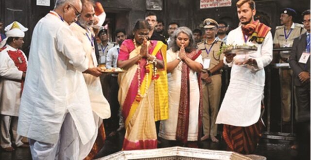 पटना,20 सितम्बर 2025 (ए)। राष्ट्रपति द्रौपदी मुर्मु ने मोक्ष की भूमि बिहार के गयाजी में शनिवार को विष्णुपद मंदिर में अपने पूर्वजों की आत्मा की शांति व मोक्ष की कामना को लेकर पिंडदान किया। उन्होंने विश्वविख्यात गयाधाम स्थित विष्णुपद मंदिर परिसर की तीन प्रमुख पिंडवेदियों पर पिंडदान किया। राष्ट्रपति अपने तय समयानुसार सुबह करीब 09 बजे गयाजी अंतराष्ट्रीय हवाईअड्डा पर विशेष विमान से पहुंचीं। इसके बाद सड़क मार्ग से विष्णुपद मंदिर पहुंचीं। इस दौरान बिहार के राज्यपाल आरिफ मोहम्मद खान भी उनके साथ रहे। राष्ट्रपति की ओर से किए जाने वाले पिंडदान के लिए जिला प्रशासन ने विष्णुपद मंदिर परिसर में ही विशेष व्यवस्था की थी। एल्यूमिनियम फैब्रिकेटेड हॉल में तीन कक्ष बनाए गए थे। एक कक्ष में राष्ट्रपति ने अपने परिजनों के साथ पिंडदान किया। गयापाल पुरोहित राजेश लाल कटरियार के नेतृत्व में वैदिक क्रियाओं के साथ धार्मिक अनुष्ठान और कर्मकांड करवाया गया। राष्ट्रपति पहली बार अपने पूर्वजों का पिंडदान करने गया पहुंची थीं। वो दो घंटे गयाजी में रुकीं और संपूर्ण विधि-विधान के साथ पिंडदान किया।