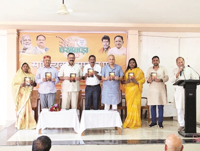 इस अवसर पर भाजपा जिलाध्यक्ष भारत सिंह सिसोदिया ने कहा कि भाजपा ने भारत के प्रधानमंत्री नरेंद्र मोदी के जन्मदिन के अवसर पर 17 सितंबर से प्रारंभ हुए सेवा पखवाड़ा कार्यक्रम अंतर्गत रक्तदान, स्वास्थ्य शिविर, स्वच्छता अभियान, बुद्धिजीवी सम्मेलन सहित जनता से जुड़े कई कार्यक्रम आयोजित किए जिसमें साहित्यकारों का सम्मान कार्यक्रम भी एक कड़ी है। अपनी लेखनी से समाज में परिवर्तन व क्रांति लाने वाले आप सभी रचनाकारों का मैं भाजपा परिवार की ओर से कोटि कोटि अभिनंदन करता हूँ। इस अवसर पर भाजपा वरिष्ठ नेता अनिल सिंह मेजर ने कहा कि साहित्य और समाज एक दूसरे के पूरक हैं, बिना साहित्य के जीवन की कल्पना नहीं की जा सकती। इस अवसर पर भाजपा जिला उपाध्यक्ष व सेवा पखवाड़ा अभियान के प्रभारी विनोद हर्ष ने स्वागत उद्बोधन देते हुए कहा कि भाजपा एकमात्र ऐसी राजनीतिक पार्टी है जो हमेशा साहित्यकारों को सम्मानित व प्रतिष्ठित कर उनका मान-सम्मान बढ़ाती है। कार्यक्रम का संचालन भाजपा जिला संवाद प्रमुख संतोष दास सरल ने तथा आभार प्रदर्शन हिन्दी साहित्य परिषद सचिव कवि अंचल सिन्हा ने किया। कार्यक्रम में जिले व नगर के कई वरिष्ठ साहित्यकारों के साथ-साथ उभरते युवा कवियों ने अपनी बेहतरीन प्रस्तुतियों से श्रोताओं को मंत्रमुग्ध कर दिया जिनमें देवेन्द्र नाथ दुबे, डॉ सपन सिन्हा, राजेश पांडे अब्र, डॉ योगेन्द्र सिंह गहरवार, रंजीत सारथी, राजेश तिवारी, श्रीमती संध्या सिंह, एसपी जयसवाल, डॉ सुधीर पाठक, विनोद तिवारी, प्रताप पांडे, कृष्ण कांत पाठक, श्रीमती गीता दुबे, श्रीमती पूनम दुबे, श्रीमती मनसा शुक्ला, श्रीमती अनिता मन्दिलवार, श्रीमती राज लक्ष्मी पांडे, श्रीमती माधुरी जयसवाल, श्रीमती पूनम पांडे, श्रीमती सीमा तिवारी, श्रीमती अंजू पांडे, राजेन्द्र विश्वकर्मा, मुकुंद लाल साहू, रविन्द्र तिवारी, जय गुप्ता, चंद्र भूषण मिश्रा, शिशुपाल गुप्ता, आर एल विश्वकर्मा, अजय श्रीवास्तव, आकाश द्विवेदी, आंचल गुप्ता, सौम्या सोनी, सेजल सिंह, विकेश गुप्ता तथा अतुल चौबे प्रमुख थे। कार्यक्रम के दौरान साहित्यकार डॉ अंचल सिन्हा व संस्कृति श्रीवास्तव द्वारा लिखित पंचतंत्र के सरगुजिहा अनुवाद पुस्तक का विमोचन अतिथियों द्वारा किया गया।