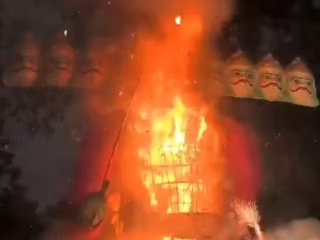 शोभायात्रा निकालकर कॉलेज ग्राउंड में रावण दहन