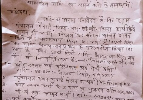 जिसमें तात्कालिक सरपंच एवं सचिव के द्वारा पंद्रह वे वित्त की राशि का ग्राम पंचायत से आहरण कर अनाप सनाप तरीके से राशि का दुरुपयोग किया गया है। ग्राम पंचायत पैनारी में बिना कार्य किए राशि आहरण किया गया है। राशि का दुरुपयोग बोर खनन एवं प्रतिस्थापन कार्य नहीं हुआ है और राशि 88.820/-रूपये आहरण दिनांक 4/8/25 को किया गया है। ग्राम पंचायत पैनारी भवन पुताई लेखन का कार्य की राशि दिनांक 10/9/25 बोर खनन कार्य हैंडपंप का भुगतान राशि 180000/-पीडीएस भवन मरम्मत कार्य की राशि 49000/- रूपए इस तरह ग्राम पंचायत पैनारी के कई कार्यों का भुगतान बिना कार्यों कर राशि आहरण किया गया है।