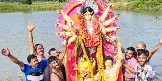 भक्तों ने विसर्जन के दौरान विधिपूर्वक पूजा-अर्चना की और मां दुर्गा से क्षेत्र की खुशहाली, परिवार में सुख-समृद्धि और समाज में शांति की प्रार्थना की। तालाब घाट के पास पुलिस प्रशासन द्वारा सुरक्षा और व्यवस्था के विशेष इंतजाम किए गए थे, जिससे श्रद्धालुओं को विसर्जन में कोई असुविधा न हो। विसर्जन के दौरान भारी भीड़ जुटी रही और इसे लेकर प्रशासन ने मार्गों पर यातायात नियंत्रण और सुरक्षा के उपाय सुनिश्चित किए।