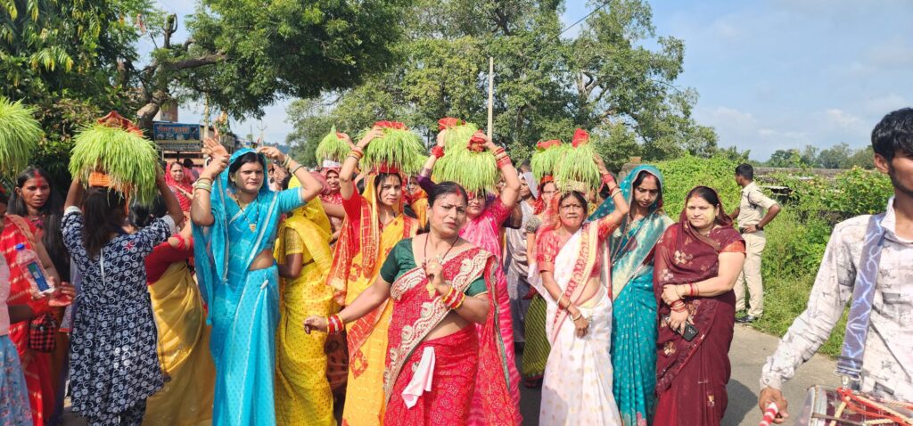 भक्ति गीतों के साथ कलश के जवारों का विसर्जन