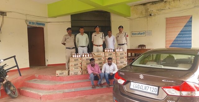 खड़गवां,07 अक्टूबर 2025 (घटती-घटना)। छत्तीसगढ़ शासन द्वारा चलाए जा रहे नशा मुक्ति अभियान के तहत पुलिस महानिरीक्षक सरगुजा रेंज दीपक कुमार झा एवं पुलिस अधीक्षक चंद्रमोहन सिंह के द्वारा नशा के विरुद्ध सख्त कार्यवाही किए जाने एवं नशा विरोधी अभियान चलाए जाने के लिए निर्देशित करने पर नगर पुलिस अधीक्षक चिरमिरी दीपिका मिंज के मार्ग दर्शन में दरमियानी रात को मुखबिर से प्राप्त सूचना से एक भूरे रंग की मारूति सियाज कार में तीन व्यक्ति अंग्रेजी शराब गोवा रखकर डोला रामनगर से देवाडाड की ओर बिक्री एवं परिवहन करने जा रहे हैं प्राप्त सूचना को वरिष्ठ अधिकारियों को जानकारी कराकर उनके दिशा निर्देश पर थाना प्रभारी उप निरीक्षक विजय सिंह के नेतृत्व में टीम गठित कर प्रधान आरक्षक जितेन्द्र मिश्रा प्रधान आरक्षक रमेश पांडे आरक्षक दिनेश साहू मोहम्मद आजाद गणेश निर्भय नारायण सिंह ने शासकीय वाहन सीजी 03 1234 में रेड कार्यवाही हेतु मौके पर उपस्थित गवाह निर्मल सिंह एवं पुरुषोत्तम सिंह साथ लेकर मुखबीर की सूचना पंचनामा तैयार कर रवाना किया जाकर ग्राम देवाडाड तिराहे पर घेराबंदी किया गया जो कुछ समय बाद एक मारुति जो नाम पता पूछने पर अपना नाम सुमित पनिका और दीपक पिता स्वर्गीय बाबूलाल पनिका उम्र 25 वर्ष साकिन सी सेक्टर कच्ची दफाई राज नगर वार्ड नंबर 15 थाना रामनगर जिला अनूपपुर मध्य प्रदेश दूसरा व्यक्ति आनंद पुरी उफऱ् वैभव पिता छोटे लाल पुरी उम्र 19 साल साकिन मनवारी वार्ड नंबर 6 6 केल्हारी थाना जिला एमसीबी का रहने वाला बताया तथा भागने वाला व्यक्ति का नाम कमलकांत मोगरे उफऱ् पप्पू निवासी डोला रामनगर मध्य प्रदेश का रहने वाला बताएं जिससे मुखबीर की सूचना से अवगत होकर पूछताछ करने पर मारुति सियाज कार में अंग्रेजी गोवा व्हिस्की शराब रखकर बिक्री करना डोला मध्य प्रदेश से खड़गवां लाना बताएं जो संदेहीओ की कार मारुति सियाज के अंदर 25 पेटी गोवा अंग्रेजी शराब प्रत्येक पेटी में 50 50 पाव प्रत्येक पाव 180 एम एल 1250 पाव शराब 225 लीटर कीमत करीब 160000/- (एक लाख साठ हजार रूपए) का बरामद हुआ एवं पुरानी इस्तेमाल भूरे रंग की मारुति सियाज कर क्रमांक सीजी 04 एल एन 7120 को कीमत करीब 515000/- (पांच लाख पंद्रह हजार रुपए) का कुल कीमत 675000/- का मिला जिसे जप्त कर आरोपी गणों को गिरफ्तार कर न्यायिक रिमांड पर भेजा गया है इस सारी कार्यवाही पर थाना प्रभारी खड़गवां विजय सिंह प्रधान आरक्षक जितेन्द्र मिश्रा रमेश पांडे दिनेश साहू मोहम्मद आजाद गणेश निर्भय नारायण सिंह का सराहनी योगदान रहा खड़गवां पुलिस ने दरमियानी रात शराब को पकड़ने में बड़ा जोखिम भरकर पकडा है मारूति चालक ने कार से टकर मारने कि कोशिश कि जिससे कार का अगला बाएं तरफ का हिस्सा पुरी तरह से क्षतिग्रस्त हो गया है पुलिस क