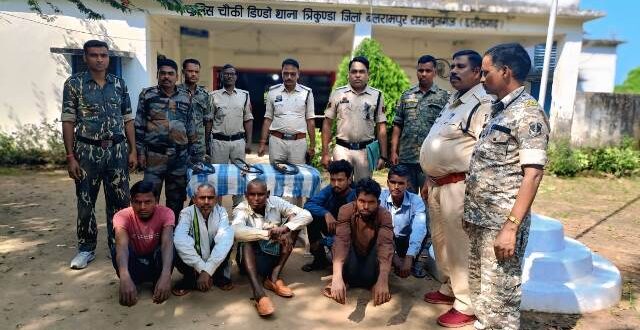 बलरामपुर,12 अक्टूबर 2025 (घटती-घटना)। बलरामपुर जिले डिंडो चौकी पुलिस ने विधुत अधिनियम की धारा-135(क) के तहत कार्यवाही कर गिरफ्तार कर आरोपी रामधनी पण्डों पिता स्व. रामसुन्दर पण्डो उम्र 52 वर्ष।देवनरायण पण्डो उम्र 40 वर्ष। धनंजय पण्डी पिता रामरूप पण्डो उम्र 26 वर्ष।अमीरचंद पण्डो पिता फुलचंद पण्डो उम्र 30 वर्ष।संदीप पण्डो पिता देवचंद पण्डो उम्र 25 वर्ष।शिवप्रसाद पण्डो पिता जगधारी पण्डो पिता जगधारी पण्डो उम्र 30 वर्ष, जयकांत पण्डो, सभी निवासी ग्राम विरेन्द्रनगर मि?ट्ठी महुआपारा,चौकी डिंडो,थाना त्रिकुंडा जिला बलरामपुर रामानुजगंज को भेजा सलाखों के पीछे। पुलिस से मिली जानकारी के अनुसार प्रार्थी विकम पण्डो पिता स्व. बासदेव पण्डो उम्र 25 वर्ष ग्राम विरेन्द्रनगर के द्वारा चौकी डिंडो में उपस्थित होकर इस आशय का रिपोर्ट दर्ज कराया कि इसका भाई जयपाल पण्डो पिता स्व. बासदेव पण्डो सा. विरेन्द्रनगर दिनांक 09/10/ 2025 रात्रि करीब 09-10 बजे के बीच अपने दोस्त शिवप्रसाद पण्डो के घर व दुकान तरफ गया था जो रात को घर नहीं लौटा। सुबह करीबन 06 बजे इसके मोबाईल में शिवप्रसाद पण्डो फोन कर बताया कि तुम्हारा भाई जयपाल पण्डो का जंगली सुअर मारने के लिये लगाए गए जीआई तार का फंदे बिजली करेंट में चिपकने से जयपाल की मृत्यू हो गई है। पुलिस ने प्रार्थी कि रिपोर्ट पर मर्ग क0 47/2025 धारा-194 बीएनएसएस तथा अपराध कमांक 62/2025 धारा 105, 3 (5) बीएनएस विद्युत अधिनियम की धारा- 135 (क) का अपराध पंजीबद्ध कर विवेचना कार्यवाही में लिया गया। विवेचना दौरान मामले के संबंध में पुलिस अधीक्षक महोदय के मार्गदर्शन में तथा अति पुलिस अधीक्षक बलरामपुर एवं एसडीओपी रामानुजगंज के निर्देशन में प्रकरण के गम्भीरता को देखते हुए प्रकरण के आरोपियों की शीघ्र गिरफ्तारी करने के निर्देश दिए जाने पर, चौकी प्रभारी डिंडो नवल किशोर दुबे द्वारा हमराह स्टाफ के साथ रवाना होकर मामले के संदिग्धों देवनरायण पण्डो पिता स्व. रामसुन्दर पण्डो उम्र 40 वर्ष, रामधनी पण्डो पिता स्व. सोनसाय पण्डो उम्रः 52 वर्ष साठ विरेन्द्रनगर (मिठी महुआ पारा) को हिरासत में लेकर कड़ाई से पूछताछ कर गवाह के समक्ष दोनों आरोपियों का कथन लिया गया ।
