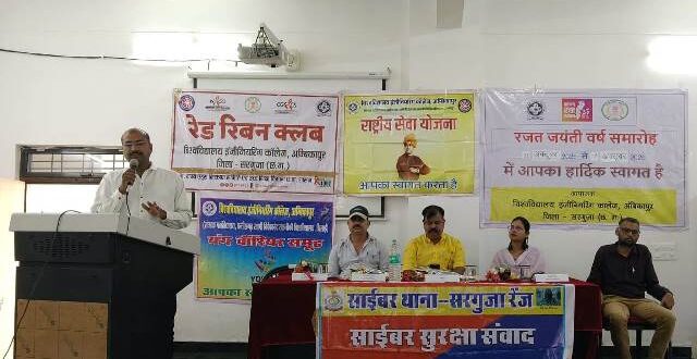 अम्बिकापुर,15 अक्टूबर 2025 (घटती-घटना)। साइबर अपराधों की बढ़ती घटनाओं को देखते हुए आमजन को डिजिटल सुरक्षा के प्रति जागरूक करने के उद्देश्य से सरगुजा रेंज साइबर थाना के अधिकारियों व कर्मचारियों द्वारा विश्वविद्यालय इंजीनियरिंग कॉलेज में एक साइबर सुरक्षा जागरूकता अभियान आयोजित किया गया। इस कार्यक्रम का आयोजन वरिष्ठ पुलिस अधिकारियों के निर्देशन में किया गया,जिसमें कॉलेज के छात्र-छात्राओं,शिक्षकगण और समस्त स्टाफ सहित लगभग 300 लोगों ने भाग लिया। कार्यक्रम में समाजसेवी संस्था सक्षम के कोषाध्यक्ष एवं जन शिक्षण संस्थान के पूर्व निदेशक राजीव पाठक ने अपने अनुभव साझा करते हुए बताया कि आजकल होने वाले अधिकतर साइबर फ्रॉड मोबाइल और डिजिटल माध्यम से हो रहे हैं। फर्जी लिंक, ओटीपी शेयर करना, आधार या बैंक डिटेल डालना जैसे सामान्य लगने वाले कार्य भी बड़ी ठगी में बदल सकते हैं। उन्होंने छात्रों से ऐसे किसी भी संदिग्ध लिंक पर क्लिक न करने,अनजान कॉल्स से सावधान रहने और अपनी निजी जानकारी साझा न करने की सलाह दी। इसके बाद रेंज साइबर थाना के सहायक उपनिरीक्षक मनोज उपाध्याय और प्रधान आरक्षक मिथलेस पाठक ने छात्रों को साइबर सुरक्षा से जुड़े तकनीकी पहलुओं की जानकारी दी। उन्होंने ऑनलाइन गेमिंग से जुड़ी लत, आर्थिक नुकसान और मानसिक प्रभावों के बारे में विस्तार से समझाया। उन्होंने बताया कि साइबर फ्रॉड की स्थिति में तुरंत साइबर हेल्पलाइन नंबर 1930 पर संपर्क करें और मोबाइल गुम होने की स्थिति में सीईआईआर पोर्टल पर शिकायत दर्ज करें। कार्यक्रम में यह भी बताया गया कि सोशल मीडिया पर अपनी गोपनीय जानकारी साझा करने से बचें, मजबूत पासवर्ड का उपयोग करें और कस्टमर केयर नंबर गूगल से खोजने की बजाय संस्थाओं की आधिकारिक वेबसाइट से प्राप्त करें। साइबर बुलिंग, फिशिंग और स्टॉकिंग जैसे खतरों पर भी प्रकाश डाला गया। कार्यक्रम में महिला आरक्षक सुषमा पैकरा सहित साइबर थाना की टीम और कॉलेज के समस्त शिक्षकगण उपस्थित रहे।