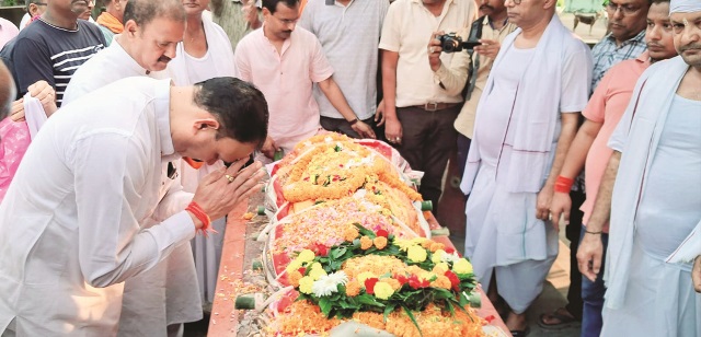 कोरबा,16 अक्टूबर 2025 (घटती-घटना)। छत्तीसगढ़ विधानसभा के पूर्व उपाध्यक्ष और जनसेवा की मिसाल स्वर्गीय श्री बनवारी लाल अग्रवाल (बनवारी भैय्या) को मोती सागर पारा मुक्तिधाम में अंतिम विदाई दी गई। तिरंगे में लिपटी उनकी पार्थिव देह को अंतिम यात्रा से पहले परिजनों, शुभचिंतकों, शहरवासीयो और अनेक राजनीतिक दलो से आये जनप्रतिनिधियो ने नम आंखों से श्रद्धांजलि अर्पित की। दोपहर करीब 3ः30 बजे दुरपा रोड स्थित निवास से प्रारंभ हुई अंतिम यात्रा में शहर भर से जनसैलाब उमड़ पड़ा। इस दौरान बनवारी भैय्या अमर रहें के नारे गूंजते रहे और हर आंख नम थी। अंतिम दर्शन के अवसर पर स्वास्थ्य मंत्री श्याम बिहारी जायसवाल, विधायक प्रेमचंद पटेल, महापौर श्रीमती संजू देवी राजपूत, पूर्व महापौर जोगेश लांबा, निवर्तमान भाजपा जिलाध्यक्ष डॉ. राजीव सिंह, वरिष्ठ भाजपा नेता आर.बी. अग्रवाल, हितानंद अग्रवाल, नरेन्द्र देवांगन, राजेन्द्र अग्रवाल, देवेन्द्र पांडेय, अशोक चावलानी, अशोक मोदी, नागरमल अग्रवाल, संजय शर्मा, अजय विश्वकर्मा, श्रीमती मंजू सिंह, श्रीमती रुक्मणी नायर, लक्की नंदा, नवीन अरोड़ा, अर्जुन गुप्ता, शैलेन्द्र यादव, अजय चन्द्रा, प्रदीप सिंह, बलराम विश्वकर्मा, योगेश मिश्रा, डिलेन्द्र यादव, उदय श्रीवास्तव सहित बड़ी संख्या में जनप्रतिनिधि, पत्रकार और नागरिक उपस्थित रहे।