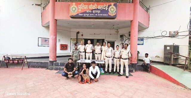 सूरजपुर,19अक्टूबर 2025 (घटती-घटना)। एसएसपी प्रशांत कुमार ठाकुर के सख्त निर्देश पर थाना-चौकी की पुलिस के द्वारा निरंतर अवैध कारोबार व सूखा नशा के विरूद्ध कार्यवाही की जा रही है। इसी परिप्रेक्ष्य में चौकी बसदेई पुलिस को मुखबीर से सूचना मिला कि ग्राम सिरसी जूनापारा निवासी राही खान अपने घर के पास अवैध रूप से नशीली इंजेक्शन अत्यधिक मात्रा में बिक्री करने हेतु रखा है। सूचना पर चौकी बसदेई पुलिस मौके पर पहुंची और दबिश देकर राही खान को पकड़ा जिसके कब्जे से 38 नग एविल इंजेक्शन व 10 नग रेक्सोजेसिक इंजेक्शन जप्त किया गया। पूछताछ पर उसने बताया कि ग्राम जमड़ी के पवन पाटिल, मोहरमनियां, 1 अन्य व्यक्ति तथा एक अपचारी बालक के पास से कई बार खरीद कर बिक्री हेतु लाना बताया। जिसके बाद पुलिस ने दबिश देकर मोहर मनिया को पकड़ा जिसके कब्जे से 118 नग एविल इंजेक्शन, 134 नग रेक्सोजेसिक इंजेक्शन जप्त किया गया वहीं आरोपी पवन पाटिल एवं एक विधि विरूद्ध संघर्षरत् बालक को भी पकड़ा गया। मामले में कुल 300 नग नशीली इंजेक्शन कीमत करीब 1 लाख 50 हजार रूपये का जप्त कर धारा 21(सी) एनडीपीएस एक्ट के तहत कार्यवाही कर आरोपी राहीखान पिता स्व. रकीब खान उम्र 40 वर्ष ग्राम सिरसी, चौकी बसदेई, पवन पाटिल पिता स्व. मानसाय उम्र 18 वर्ष 4 माह, मोहर मनिया पति मानसाय उम्र 50 वर्ष निवासी ग्राम जमड़ी, थाना झिलमिली को गिरफ्तार किया गया वहीं विधि विरूद्ध संघर्षरत् बालक को विधि अनुसार किशोर न्याय बोर्ड के समक्ष पेश किया गया। इस कार्यवाही में चौकी प्रभारी बसदेई योगेन्द्र जायसवाल, प्रधान आरक्षक अलका टोप्पो, आरक्षक देवदत्त दुबे, निलेश जायसवाल, अशोक केंवट, अनिल विश्वकर्मा, अशोक सिंह, रामकुमार सिंह व महिला आरक्षक पूनम सिंह सक्रिय रही।