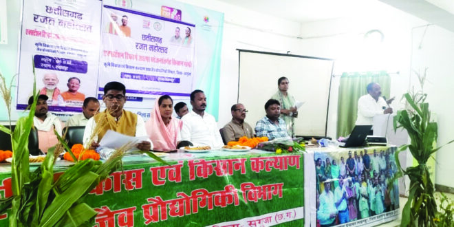 लखनपुर,22 अक्टूबर 2025 (घटती-घटना)। रजत जयंती महोत्सव के अवसर पर जनपद सभागार में किसान संगोष्ठी कार्यक्रम का भव्य आयोजन किया गया। कार्यक्रम में क्षेत्र के अनेक किसान, जनप्रतिनिधि एवं विभागीय अधिकारी बड़ी संख्या में उपस्थित रहे। कार्यक्रम के मुख्य अतिथि जनपद पंचायत अध्यक्ष श्रीमती शशि कैलाश सिंह रहीं। विशिष्ट अतिथि के रूप में जनपद उपाध्यक्ष रामेश्वर राजवाड़े,मंडल अध्यक्ष दिनेश बारी, ओबीसी मोच के जिला अध्यक्ष राजेंद्र जयसवाल, विधायक प्रतिनिधि राकेश साहू, , एवं जनपद सदस्य प्रतिनिधि सुरेश सिंह उपस्थित रहे। कार्यक्रम का आयोजन कृषि विभाग, उद्यानिकी विभाग, पशु चिकित्सा विभाग एवं मत्स्य विभाग के संयुक्त तत्वावधान में किया गया। कार्यक्रम का शुभारंभ अतिथियों द्वारा दीप प्रज्वलन एवं मां सरस्वती की वंदना के साथ किया गया। इस अवसर पर मुख्य वक्ता कामेश्वर राजवाड़े ने किसानों को संबोधित करते हुए आधुनिक कृषि तकनीक, बीज चयन, सिंचाई प्रणाली और उत्पादन बढ़ाने के उपायों पर विस्तृत जानकारी दी और पशु घन पर भी बल दिया। मंडल अध्यक्ष दिनेश बारी ने अपने प्रेरक उद्बोधन में जैविक खेती के महत्व एवं उसके लाभों के बारे में किसानों को विस्तारपूर्वक बताया। उन्होंने कहा कि जैविक खेती न केवल भूमि की उर्वरता को बनाए रखती है बल्कि यह किसानों की आय बढ़ाने और पर्यावरण संरक्षण में भी सहायक है। इसी क्रम में विक्रम सिंह ने राज्य शासन की विभिन्न जन कल्याणकारी योजनाओं की जानकारी विस्तारपूर्वक देते हुए किसानों को इन योजनाओं का अधिक से अधिक लाभ लेने का आग्रह किया। कृषि विभाग के अधिकारी सूर्यकांत गुप्ता एवं कृषि महाविद्यालय की प्रोफेसर अजीमा ने मृदा परीक्षण एवं मिट्टी की गुणवत्ता सुधार के विषय में किसानों को महत्वपूर्ण जानकारी दी। जिला सहकारी समिति के प्रबंधक नीलकमल पांडे ने किसानों को सहकारी योजनाओं की जानकारी दी, वहीं उद्यान विभाग के अधिकारी उमेश पर ने उद्यानिकी योजनाओं की जानकारी प्रस्तुत की। कार्यक्रम में किसानों को कृषि क्रेडिट कार्ड,किसान स्वास्थ्य कार्ड, तथा मत्स्य विभाग की ओर से मछली पकड़ने के जाल एवं मत्स्य पालन किट का निःशुल्क वितरण किया गया। साथ ही किसान मित्रों को विभिन्न फसलों की नई जातियों एवं उन्नत उत्पादन तकनीकों के बारे में भी अवगत कराया गया। कार्यक्रम के दौरान मंडल अध्यक्ष दिनेश बारी ने कार्यक्रम की व्यवस्था में शिथिलता को लेकर कुछ कर्मचारियों को फटकार लगाई और अनुशासन एवं गरिमा बनाए रखने के निर्देश दिए। अंत में उपस्थित किसानों ने जैविक खेती को अपनाने और शासन की योजनाओं का लाभ लेकर आत्मनिर्भर किसान बनने का संकल्प लिया।