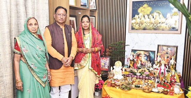 जशपुरनगर,22 अक्टूबर 2025 (घटती-घटना)। मुख्यमंत्री श्री विष्णु देव साय ने मुख्यमंत्री कैंप कार्यालय बगिया में सपरिवार प्रतीक स्वरूप गोवर्धन पर्वत की पूजा अर्चना की और प्रदेश के सुख समृद्धि और खुशहाली की कामना की इस अवसर पर मुख्यमंत्री की माता श्रीमती जसमनी देवी साय मुख्यमंत्री की धर्मपत्नी श्रीमती कौशल्या साय और परिवार के सदस्य भी उपस्थित थे। मुख्यमंत्री ने कहा कि गोवर्धन पूजा एक पवित्र त्यौहार है इस दिन अन्नकूट की परंपरा निभाई जाती है। एक महत्वपूर्ण हिंदू पर्व है,जो दीपावली के अगले दिन,कार्तिक शुक्ल प्रतिपदा को मनाया जाता है। यह पूजा भगवान श्रीकृष्ण द्वारा गोवर्धन पर्वत को उठाने की लीला की स्मृति में की जाती है। उन्होंने कहा कि गोकुलवासियों को लगातार वर्षा और संकट का सामना करना पड़ा, तब भगवान श्रीकृष्ण ने गोवर्धन पर्वत को अपनी छोटी अंगुली पर उठाकर गांववासियों को शरण दी। जिससे आने वाले संकट को दूर किया जा सके। इस दिन गोवर्धन का चित्र या प्रतीक बनाया जाता है। घर के आंगन में गोबर से गोवर्धन पर्वत का चित्र या आकृति बनाई जाती है। अन्नकूट के तहत तरह-तरह के पकवान,सब्जियां,मिठाइयां बनाकर थाल में सजाए जाते हैं इसे अन्नकूट कहा जाता है। भगवान कृष्ण की पूजा कर उन्हें अन्नकूट का भोग लगाया जाता है। मुख्यमंत्री ने कहा कि गोवर्धन पूजा के दिन गायों की विशेष पूजा की जाती है । जिससे गोवंश के संरक्षण संवर्धन को बढ़ावा मिलेगा।