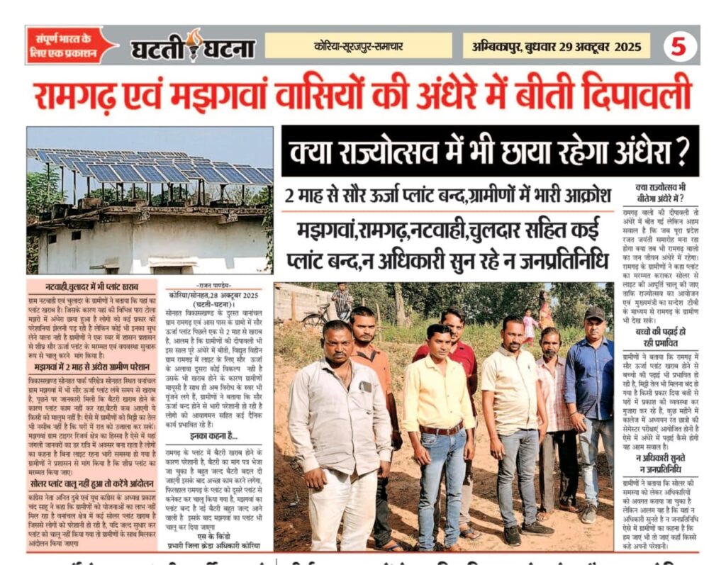 - घटत-घटना ने सौर प्लांट बन्द होने को लेकर प्रमुखता से किया था खबर का प्रकाशन