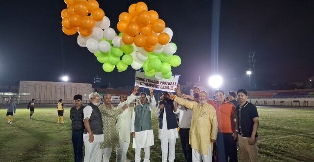 छत्तीसगढ़ के खेल परिदृश्य में एक नया उत्साहपूर्ण अध्याय जोड़ते हुए, वीर स्पोर्ट्स क्लब द्वारा आयोजित छत्तीसगढ़ फुटबॉल चैंपियंस लीग का भव्य और रंगारंग शुभारंभ 29 अक्टूबर 2025 को देर रात्रि राजधानी रायपुर के स्वामी विवेकानंद स्टेडियम कोटा मैदान पर हुआ। यह लीग छत्तीसगढ़ फुटबॉल एसोसिएशन से संबद्ध प्रदेश की सबसे बड़ी फ्रेंचाइजी आधारित रात्रिकालीन फुटबॉल प्रतियोगिता है, जो राज्य में पेशेवर फुटबॉल को नई ऊंचाइयों पर ले जाने का संकल्प लेती है। क्लब के अध्यक्ष अधिवक्ता प्रवीण जैन ने बतलाया कि शुभारंभ समारोह में मुख्य अतिथि के रूप में उपस्थित छत्तीसगढ़ विधानसभा के नेता प्रतिपक्ष डॉ. चरणदास महंत, भारतीय फुटबॉल के दिग्गज खिलाड़ी धर्मराज रावनन एवं भरतपुर सोनहत के पूर्व विधायक गुलाब करने ने दीप प्रज्वलन कर लीग का औपचारिक उद्घाटन किया। डॉ. महंत ने कहा, “छत्तीसगढ़ का युवा फुटबॉल के प्रति उत्साही है। यह लीग न केवल खिलाडि़यों को राष्ट्रीय स्तर पर प्रतिस्पर्धा करने का अवसर देगी, बल्कि राज्य की खेल संस्कृति को मजबूत करेगी। उन्होंने कहा कि रायपुर में अंतरराष्ट्रीय फुटबॉल स्टेडियम बनाए जाने का प्रस्ताव वे विधानसभा में रखेंगे। उद्घाटन अवसर पर प्रतियोगिता में 5 मैच आयोजित किए गए। दिन का पहला मैच सायं 7 बजे बॉर्नियो कैपिटल्स और ब्रह्मविद एफ सी के मध्य खेल गया, दोनों टीमों के बीच कड़ा मुकाबला देखने को मिला, दोनों ही टीमों ने एक एक गोल किए यह रोमांचक मुकाबला ड्रॉ पर समाप्त हुआ। दिन का दूसरा मैच इन्फिनिटी टाइगर्स और विला एफ सी के मध्य खेला गया,विला एफसी ने शानदार रक्षात्मक प्रदर्शन करते हुए 1 गोल कर लीग की पहली जीत हासिल की। दिन का तीसरा मुकाबला जे एस एफ क्लब और स्वर्ण शिल्पी ब्लास्टर्स के मध्य खेला गया जिसे जे एस एफ क्लब ने 0 के मुकाबले 2 गोल कर बेहतरीन तालमेल और आक्रामक खेल के दम पर क्लीन शीट के साथ जीत दर्ज की,रात्रि का चौथा मैच मैट्स पैंथर्स 0 – 0 शराफत लायंस दोनों के मध्य मुकाबला बिना किसी गोल के समाप्त हुआ। रात्रि का अंतिम और पांचवां मैच नरेश चैलेंजर्स और फिल्स फाइटर बिलासपुर के मध्य खेला गया जिसे 1 के मुकाबले 3 गोल दाग कर नरेश चैलेंजर्स ने जोरदार प्रदर्शन करते हुए शानदार जीत हासिल की। उद्घाटन दिवस पर दर्शकों की भारी भीड़ ने खिलाडि़यों का उत्साह बढ़ाया और मैदान पर रोमांच का माहौल बना रहा।
