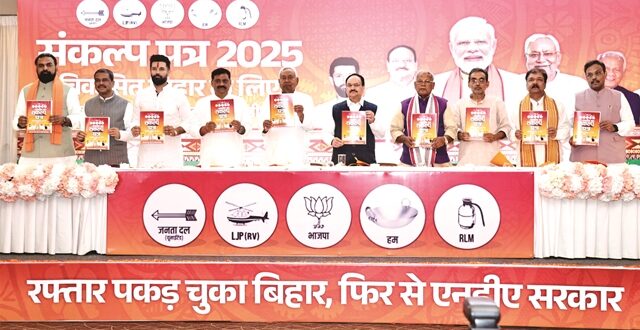 पटना@बिहार चुनाव : एनडीए का संकल्प पत्र,केजी पीजी तक मुफ्त शिक्षा, 1 करोड़ नौकरी का वादा