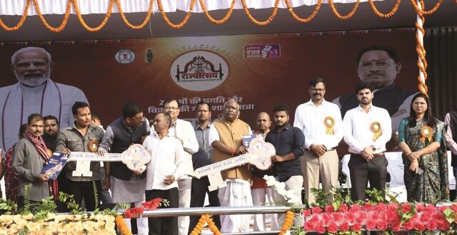 सांसद श्री महाराज के द्वारा हितग्राही मूलक सामग्री का वितरण : सरगुजा सांसद श्री चिंतामणि महाराज ने राज्योत्सव के प्रथम दिवस विभिन्न योजनाओं के तहत 51 हितग्राहियों को सामग्रियों का वितरण किया। जिसमें पंचायत एवं ग्रामीण विकास विभाग अंतर्गत 10 हितग्राहियों को प्रधानमंत्री आवास की चाबी सौंप गई। सांस्कृतिक कार्यक्रम में बच्चों की रंगारंग प्रस्तुतियों ने बांधा समां बाल कलाकारों की अद्भुत प्रस्तुति देख दर्शक हुए अभिभूत छत्तीसगढ़ राज्य स्थापना दिवस के 25 वर्ष पूरे होने के उपलक्ष्य में आयोजित राज्योत्सव के मुख्य समारोह में विविध कार्यक्रम आयोजित किए गए। स्कूली, कॉलेज के विद्यार्थियों द्वारा भाषण एवं वाद-विवाद प्रतियोगिता का आयोजन किया गया। प्रतिभागियों ने अपने विचारों की अद्भुत प्रस्तुति दी। युवा प्रतिभागियों ने छत्तीसगढ़ के विकास, संस्कृति और एकता के संदेश को शब्दों में पिरोकर सबका मन मोह लिया। तत्पश्चात रस्साकसी प्रतियोगिता आयोजित की गई, जिसमें सभी प्रतिभागियों ने पूरे जोश के साथ खेल भावना का परिचय दिया। सांस्कृतिक कार्यक्रम में बच्चों ने मनमोहक प्रस्तुति ने दर्शकों का मन जीत लिया। छत्तीसगढ़ी परंपरा, लोकगीत, लोकनृत्य और संस्कृति की झलक पेश की।