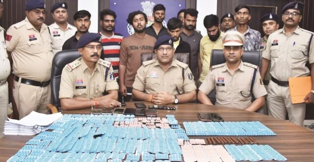 दुर्ग,03 नवम्बर 2025। पुलिस ने ऑपरेशन विश्वास चलाकर बड़ी कार्रवाई को अंजाम दिया है। पुलिस को मुखबीर से सूचना मिला था कि कुछ लोग खुर्सीपार के आईटीआई ग्राउंड में नशीली कैप्सूल/टैबलेट अवैध रूप से रखकर बिक्री करने ग्राहक तलाश रहे हैं। सूचना के उपरांत उपस्थित स्टॉफ घटनास्थल पर रवाना हुआ मौके पर पाया कि कुछ व्यक्ति नशीली दवाएं रखे हैं । घेराबंदी कर उन्हें पकड़ कर पूछताछ किया गया जिस पर संदेहियों द्वारा अपना नाम रजनीश पांडे, विपिन जेम्स, श्याम कन्हैया विश्वकर्मा, रणजीत राम, अभिजीत साहू व अरबाज खान उर्फ बाबू बताया आरोपीगण द्वारा नशीली कैप्सूल टेबलेट की बिक्री करना बताने पर तलाशी ली गई जिसमें रजनीश पांडे से बिना नंबर मोटरसाइकिल, नशीली कैप्सूल 192 नग, नगदी रकम 400 रुपए एवं एप्पल व मोटारोला का फोन, विपिन जेम्स से 312 नाग कैप्सूल, सैमसंग का मोबाइल और नगदी रकम तीन सौ रुपए, श्याम कन्हैया विश्वकर्मा से प्रोक्सी को स्पष्ट कैप्सूल 264 नाग, एक वीवो मोबाइल, नगदी रकम 350 रुपए, रणजीत राम से 280 नाग कैप्सूल एक सैमसंग मोबाइल ?250 नगदी रकम, अभिजीत साहू से 296 नाग कैप्सूल तथा अरबाज खान से 700नग कैप्सूल एवं एक वनप्लस मोबाइल फोन बरामद किया गया इसी प्रकार कुल 2044 नग कैप्सूल एवं बिक्री रकम 1300 टाइटन की घड़ी, 6 नग मोबाइल,एक मोटरसाइकिल बरामद किया गया, आरोपीयो के विरूद्ध थाना खुर्सीपार में अपराध धारा 21 सी, 8, 27(ए) एनडीपीएस एक्ट, 111(3) बीएनएस पंजीबद्ध कर आरोपियों को न्यायिक रिमांड पर भेजा गया। थाना पद्मनाभपुर में मुखबिर से सूचना प्राप्त हुई कि मानस भवन के पीछे रविशंकर स्टेडियम दुर्ग के पास नशीली दवाई रखकर बिक्री की जा रही है, सूचना उपरांत पुलिस टीम द्वारा सक्रिय कार्यवाही करते हुए सूचनास्थल पर पहुंची मौके पर पहुंच कर देखा कि दो व्यक्तियों द्वारा नशीली दवा रखे हैं।