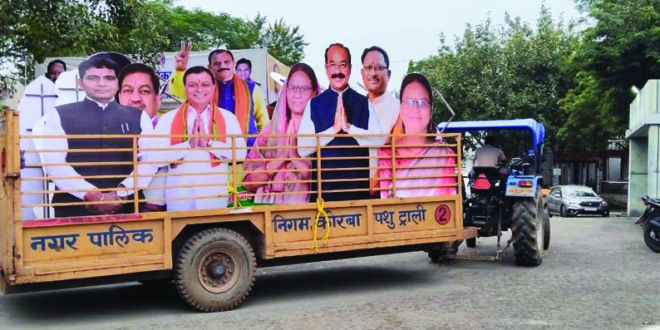 कोरबा,03 नवम्बर 2025 (घटती-घटना)। नगर निगम कोरबा द्वारा निकाली गई झांकी इन दिनों चर्चा का विषय बनी हुई है। झांकी में शहर और प्रदेश के प्रमुख जनप्रतिनिधियों के आकर्षक कटआउट लगाए गए हैं,जो देखने वालों का ध्यान अपनी ओर खींच रहे हैं, यह झांकी ‘निगम कोरबा – पशु वाहन झांकी’ नाम से ट्रैक्टर-ट्रॉली में सजाई गई है, जिसे नगर निगम ने विशेष अवसर पर तैयार कराया। झांकी में प्रमुख नेताओं की तस्वीरें और स्वागत की मुद्रा में बने कटआउट इसे और भी आकर्षक बना रहे हैं, शहरवासियों ने झांकी को देखते हुए तस्वीरें खींची और सोशल मीडिया पर साझा किया। कई लोगों ने इसे नगर निगम की ओर से रचनात्मक पहल बताया, नगर निगम के अधिकारियों का कहना है कि इस झांकी का उद्देश्य जनप्रतिनिधियों द्वारा किए गए विकास कार्यों और नगर निगम की उपलब्धियों को जनता तक पहुँचाना है, आगामी आयोजनों में भी यह झांकी प्रदर्शित की जाएगी। वैसे इस झांकी को लेकर लोग व्यंग भी कसते नज़र आए, कुछ लोगों ने इसको लेकर यह भी कहा कि ऐसा किया जाना गलत है प्रदेश के माननीय जनप्रतिनिधियों का यह अपमान है,लोगों ने कहा कि ट्राली में इसे ले जाया जा रहा था वहीं लगाने के लिए तब तो कोई बात नहीं यह आम बात है लेकिन यदि यह प्रदर्शनी है तो वाहन को सजाया जाना चाहिए, वैसे इस मामले में नगर निगम प्रबंधन का कोई बयान सामने नहीं आया है,वैसे जो लोग इसे गलत बता रहे हैं वह इस मामले में कार्यवाही की भी बात कर रहे हैं और उनका कहना है कि यदि यह अनादर है प्रदेश सरकार के नेतृत्व कर्ताओं का तो मामले में कार्यवाही होनी चाहिए।
