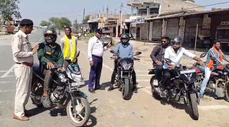 यातायात जागरूकता अभियान में नागरिकगण औरों को हेलमेट पहनने कर रहे जागरूक