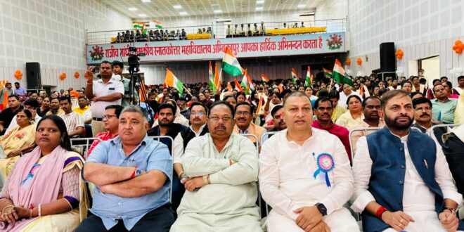 आज अंबिकापुर स्थित पी.जी. कॉलेज ऑडिटोरियम भवन में भाजपा सरगुजा द्वारा ‘वंदे मातरम् गीत का सामूहिक गायन’ कार्यक्रम का भव्य आयोजन किया गया। कार्यक्रम में मुख्य अतिथि के रूप में छत्तीसगढ़ शासन के मंत्री राजेश अग्रवाल, विशिष्ट अतिथि के रूप में भाजपा के प्रदेश महामंत्री अखिलेश सोनी, भाजपा जिलाध्यक्ष भारत सिंह सिसोदिया, विधायक प्रबोध मिंज, विधायक राजकुमार टोप्पो, महापौर मंजूषा टोप्पो एवं जिला पंचायत अध्यक्ष निरूपा सिंह की गरिमामयी उपस्थिति रही। कार्यक्रम की शुरुआत भारत माता की प्रतिमा पर माल्यार्पण एवं दीप प्रज्वलन के साथ हुई। मुख्य अतिथि राजेश अग्रवाल ने अपने प्रेरक संबोधन में कहा कि ‘वंदे मातरम् केवल एक गीत नहीं, बल्कि यह हमारी राष्ट्रभक्ति, मातृभूमि के प्रति समर्पण और एकता का प्रतीक है। जब पूरा समाज एक स्वर में इस गीत को गाता है, तब भारत की आत्मा बोल उठती है। आज का यह आयोजन सरगुजा की राष्ट्रीय चेतना और सांस्कृतिक गौरव का उत्कृष्ट उदाहरण है। ‘