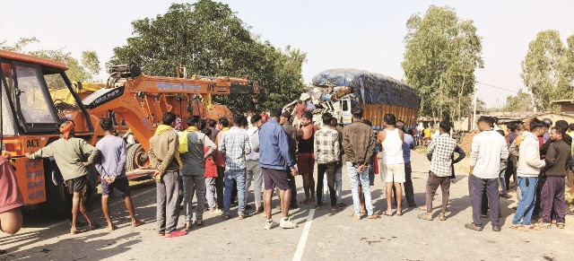 जिले के कोतवाली थाना क्षेत्र के कमलपुर कोटमी गांव के पास शुक्रवार सुबह नेशनल हाइवे-43 पर एक दिल दहला देने वाला हादसा हुआ। दो ट्रकों की आमने-सामने जोरदार भिड़ंत में मामा-भांजा की मौके पर ही मौत हो गई, जबकि दो अन्य गंभीर रूप से घायल हो गए। हादसे के बाद सड़क पर घंटों जाम लगा रहा और अफरा-तफरी का माहौल बन गया। जानकारी के अनुसार, ट्रक क्रमांक ष्टत्र10ख्क्क 8290 अंबिकापुर से महेंद्रगढ़ की ओर जा रहा था, जिसमें टीएमटी सरिया लोड था। वहीं सामने से आ रहा दूसरा ट्रक क्रमांक ॥क्क 24 ष्ठ 8850 सतना से गेहूं लेकर उड़ीसा की ओर जा रहा था। कोटमी गांव के पास दोनों ट्रक आमने-सामने इतनी तेज रफ्तार में भिड़ गए कि दोनों गाडि़याँ आपस में बुरी तरह चिपक गईं।