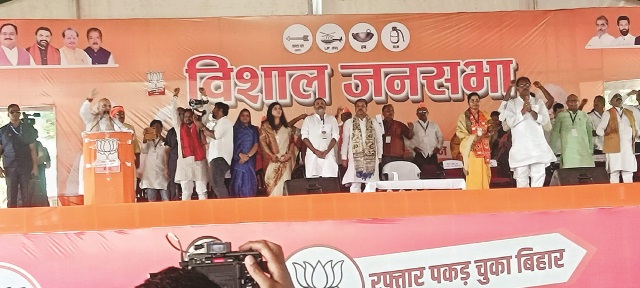 कटिहार,08 नवम्बर 2025। केंद्रीय गृह मंत्री अमित शाह शनिवार को कटिहार के कोढ़ा विधानसभा से एनडीए से भाजपा प्रत्याशी कविता पासवान के समर्थन में विशाल जनसभा को सम्बोधित किया। उन्होंने कहा कि बिहार विधानसभा चुनाव के पहले चरण के मतदान में पहले चरण के मतदान में ही लोगों ने बिहार में एनडीए सरकार गठन का नीव डालने का काम किया। गृहमंत्री ने कहा कि दूसरे चरण के मतदान के बाद जंगलराज वाले दूर-दूर तक दूरबीन से खोजने पर भी नजर नही आएंगे। सीमांचल सहित बिहार के अन्य क्षेत्र में हो रहे बंगालदेशी घुसपैठिये को संरक्षण देने का आरोप लगाते हुए अमित शाह ने लालू यादव, राहुल गाँधी पर जमकर हमला बोला।