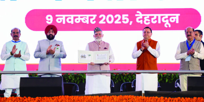 उत्तराखंड,09 नवम्बर 2025। उत्तराखंड की रजत जयंती पर आज पीएम मोदी देहरादून पहुंचे। फॉरेस्ट रिसर्च इंस्टीट्यूट में 29 मिनट के भाषण की शुरुआत उन्होंने गढ़वाली बोली में की। उन्होंने कहा- भय-बंधों, दीदी भुल्यों दयाणा स्याणां…आप सबुकई मेरू नमस्कार। इसके बाद उन्होंने सभी उत्तराखंडियों को राज्य गठन के 25 साल पूरे होने पर बधाई दी। उन्होंने कहा- तीर्थाटन और बरामासी पर्यटन उत्तराखंड को नई ऊंचाइयों पर ले जाएगा,राज्य का असली परिचय उसकी आध्यात्मिक शक्ति है। ये दुनिया की स्पिरिचुअल कैपिटल के रूप में स्थापित हो सकता है। पीएम ने मंच से बटन दबाकर 8140 करोड़ की योजनाएं भी शुरू कीं। उन्होंने कहा कि कई बार इस राज्य के विकास पर ब्रेक लगा है, लेकिन हमने सुनिश्चित किया है कि ये ब्रेक ना लगे। अगस्त 2014 के बाद 30वीं बार उत्तराखंड पहुंचे मोदी से पहले मंच को संबोधित करते हुए सीएम पुष्कर सिंह धामी ने उनकी जमकर तारीफ की, मंच से ही उन्होंने एक कविता पढ़कर पीएम को राष्ट्र ऋषि बताया।