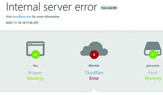 नई दिल्ली,18 नवम्बर 2025। सोशल मीडिया प्लेटफॉर्म एक्स, एआई चैटबॉट चैटजीपीटी और कैनवा की सर्विसेज देशभर में बंद हैं। भारत समेत दुनियाभर में यूजर्स को लॉगिन,साइनअप,पोस्ट करने और देखने के अलावा प्रीमियम सर्विसेज सहित प्रमुख सुविधाओं का उपयोग करने में दिक्कत आ रही है। सर्वर डाउन होने की जानकारी देने वाली वेबसाइट डाउनडिटेक्टर भी बंद है। सर्वर प्रोवाइडर क्लाउडफ्लेयर के डाउन होने के कारण यह दिक्कत आई है। इससे जुड़ी करीब 75 लाख वेबसाइट्स पर भी असर पड़ा है। क्लाउडफ्लेयर एक इंटरनेट इंफ्रास्ट्रक्चर कंपनी है,जो वेबसाइट और एप्लिकेशन को फास्ट,ज्यादा सेफ और ज्यादा भरोसेमंद बनाने के लिए सर्विस प्रोवाइड करती है। इसके डाउन होने से ये सर्विसेज डाउन हैं।