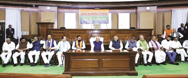 बिहार में नीतीश कुमार ने राज्यपाल से मिलकर सरकार बनाने का दावा पेश कर दिया है। इससे पहले विधानसभा के केंद्रीय कक्ष में हुई राष्ट्रीय जनतांत्रिक गठबंधन (राजग) की अहम बैठक में नीतीश कुमार को सर्वसम्मति से राष्ट्रीय जनतांत्रिक गठबंधन (राजग) विधायक दल का नेता चुना गया। राजग की बैठक में भारतीय जनता पार्टी के नेता सम्राट चौधरी ने नीतीश कुमार को नेता चुने जाने का प्रस्ताव रखा, जिसे विजय कुमार सिन्हा ने समर्थन दिया। इसके बाद विजेन्द्र यादव, राजू तिवारी, संजय पासवान, प्रफुल्ल मांझी, स्नेहलता ने भी इसका समर्थन किया। मौके पर सम्राट चौधरी ने कहा कि आज हम लोगों ने राजग विधानमंडल दल के नेता का चयन किया। राजग को मिली प्रचण्ड जीत के लिए बिहार की जनता को धन्यवाद देता हूं। राजग के सभी घटक दलों के नेताओं को भी धन्यवाद दिया। उपेन्द्र कुशवाहा ने कहा कि राजग गठबंधन की ऐतिहासिक जीत के लिए बिहार की महिला मतदाताओं को आभार व्यक्त करता हूं। मुख्यमंत्री नीतीश कुमार के काम का इस जीत में बड़ा योगदान रहा है। प्रधानमंत्री नरेन्द्र मोदी और मुख्यमंत्री नीतीश के काम को देख कर जनता ने राजग को आशीर्वाद दिया। विजय चौधरी ने कहा कि महिलाओं ने मतदान में रिकॉर्ड कायम किया है। महिलाएं और युवा वर्ग राजग के प्रति उत्साहित हैं। इससे पहले नीतीश कुमार सेंट्रल हॉल पहुंचे तब हाथ जोड़कर वहां मौजूद लोगों का उन्होंने अभिवादन किया। इस बैठक में राजग के तमाम नवनिर्वाचित विधायक शामिल हुए और नीतीश कुमार को राजग का नेता चुना, जिसके बाद नीतीश कुमार विधानसभा के सेंट्रल हॉल से राजभवन के लिए रवाना हो गए। राजभवन में नीतीश कुमार के साथ राजग के सभी सहयोगी दलों के शीर्ष नेता मौजूद थे। जदयू अध्यक्ष,भाजपा विधायक दल के नेता,हम और रालोमा दल के प्रतिनिधि,सभी एक साथ पूरे राजनीतिक गठजोड़ की मजबूती का संदेश दे रहे थे। राजग विधायक दल की बैठक में सर्वसम्मति से नेता चुने जाने के बाद मुख्यमंत्री नीतीश कुमार राजभवन पहुंच कर राज्यपाल से मिले और सरकार बनाने का दावा पेश किया। मौजूदा मुख्यमंत्री होने के नाते नीतीश कुमार ने पहले पद से इस्तीफा दिया और नई सरकार बनाने का दावा प्रस्तुत किया।