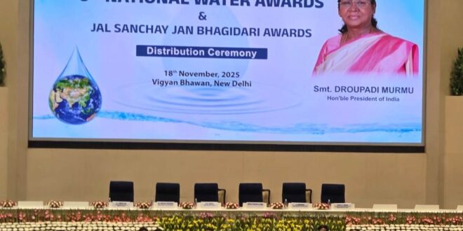 नई दिल्ली स्थित विज्ञान भवन में आयोजित छठवें राष्ट्रीय जल पुरस्कार एवं जल संचय जनभागीदारी पुरस्कार वितरण समारोह में राष्ट्रपति श्रीमती द्रौपदी मुर्मू व मंत्री जल शक्ति मंत्रालय भारत सरकार श्री सी. आर. पाटिल के करकमलों से जल शक्ति जन भागीदारी अभियान 1.0 के अंतर्गत बलरामपुर-रामानुजगंज जिले को उसके उत्कृष्ट प्रदर्शन के लिए 25 लाख रुपये की पुरस्कार राशि प्रदान की गई। उक्त पुरस्कार कलेक्टर श्री राजेन्द्र कटारा के द्वारा ग्रहण किया गया। जल शक्ति जन भागीदारी अभियान 1.0 जल संचय संरचना निर्माण तथा उनका डाटा बेस तैयार करने हेतु एक सफल अभियान है, जिसके अंतर्गत बलरामपुर-रामानुजगंज जिले ने पूर्वी क्षेत्र की श्रेणी-3 में 6वां रैंक हासिल किया है। उल्लेखनीय है कि जिले में जल संरचनाओं का निर्माण के लिए यह उपलब्धि मिली है। कलेक्टर श्री राजेन्द्र कटारा के नेतृत्व एवं जिला पंचायत सीईओ श्रीमती नयनतारा सिंह तोमर के मार्गदर्शन में सफलता प्राप्त की गई है।